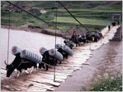 資材を運ぶヤク。2001年、ミンドゥリン・プロジェクトが届けた資材と、100人以上の村人達の作業によって、再建は始まりました。