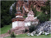 完成した仏塔。全部で6つの仏塔が完成しました。チベットでは吉祥とされる白い虹が、完成した仏塔から空に向かって現れました。